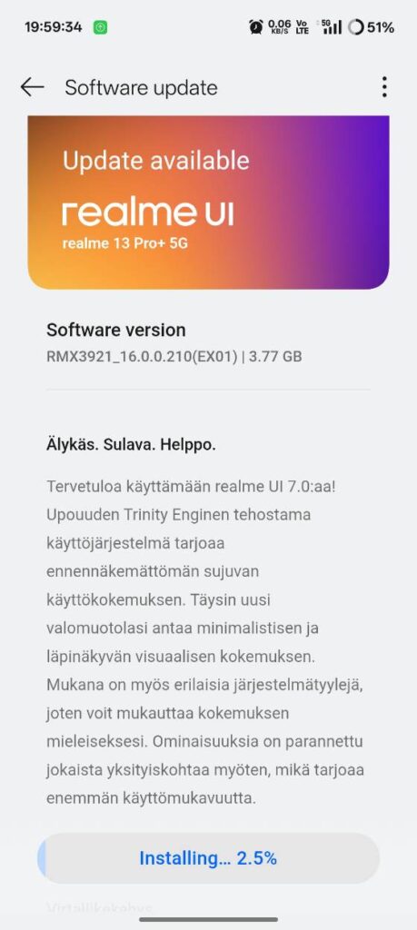 Moving on to the update itself, no major bugs were spotted after installation. However, some minor issues were observed, such as slightly increased battery drain. No significant improvements were noticed in the camera. It does include some features of Realme UI 7.