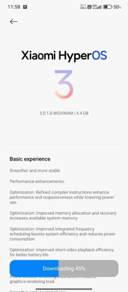 This new update has started rolling out to both the Redmi A4 5G and Poco C75 devices. The update version number is 3.0.1.0.WGVINXM. The file size is approximately 4.4 GB. Since this is a major update, the update size is quite large, so it’s recommended to use a high-speed internet connection like Wi-Fi for downloading it.