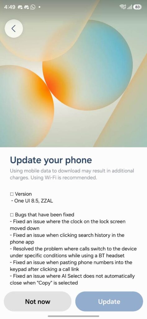 Samsung Galaxy S25 Ultra OneUI 8.5 Optimization Update