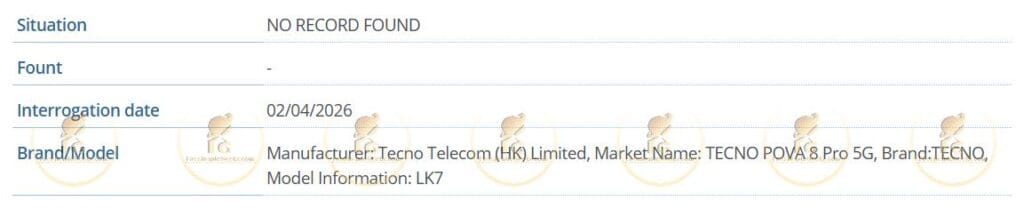 PassionateGeekz has reported in their exclusive report that the model number of Tecno Pova 8 Pro 5G LK7 has been listed on the IMEI database. Such listings usually happen when the phone goes into the final stage of production.